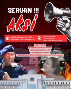 Untuk itu, kami mengajak seluruh elemen masyarakat, mahasiswa, pemuda, dan simpatisan perjuangan untuk tetap solid dan bersatu dalam aksi damai pada Kamis, 04 September 2025, sebagai bentuk perlawanan terhadap kebijakan yang tidak pro-rakyat dan tindakan represif aparat terhadap kebebasan berekspresi.