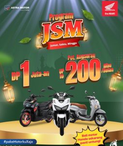 “Kami menghadirkan program JSM sebagai bentuk komitmen untuk memberikan kemudahan dan keuntungan lebih bagi konsumen. Dengan berbagai promo menarik ini, kami berharap masyarakat dapat segera mewujudkan impian memiliki sepeda motor Honda,” ujar Adrian Arlim Marketing Manajer Astra Motor NTB.